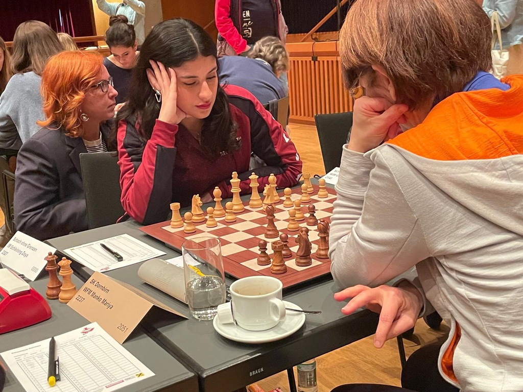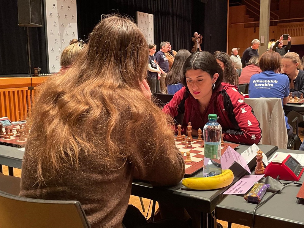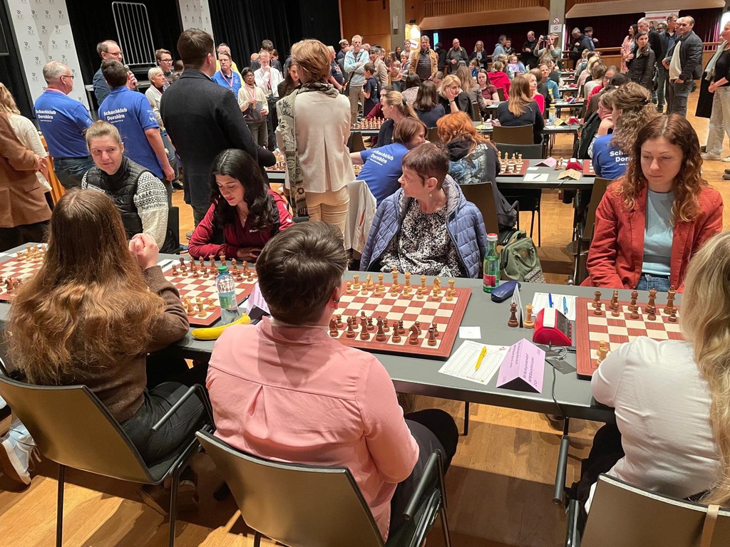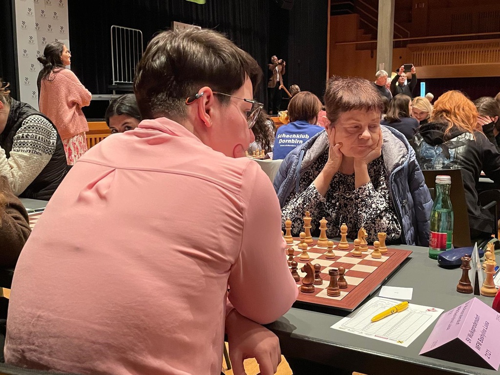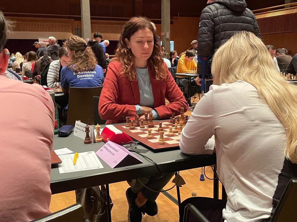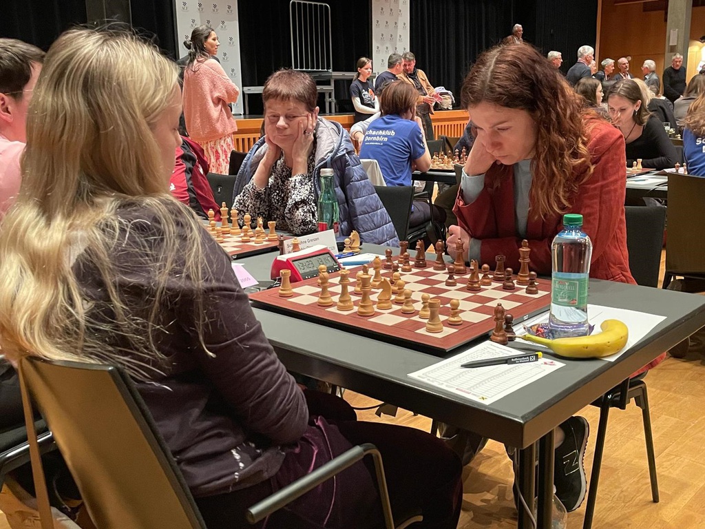 Nach drei Stunden kam Marina zu Gegenspiel und konnte sich ins Remis retten. Sehr viel Glück hatte Marharyta. Sie musste eine Quali geben, aber ihre Gegnerin fand einen einzügigen Gewinn nicht. Marharyta kam dann zu Gegendrohungen und die Partie endete in einer Zugwiederholung. Auch Olga musste hart fighten, konnte die Stellung dann vereinfachen und Remis war die logische Folge.
