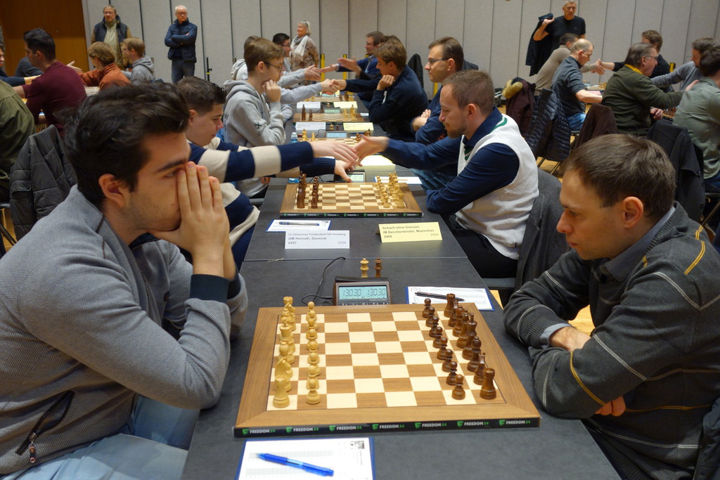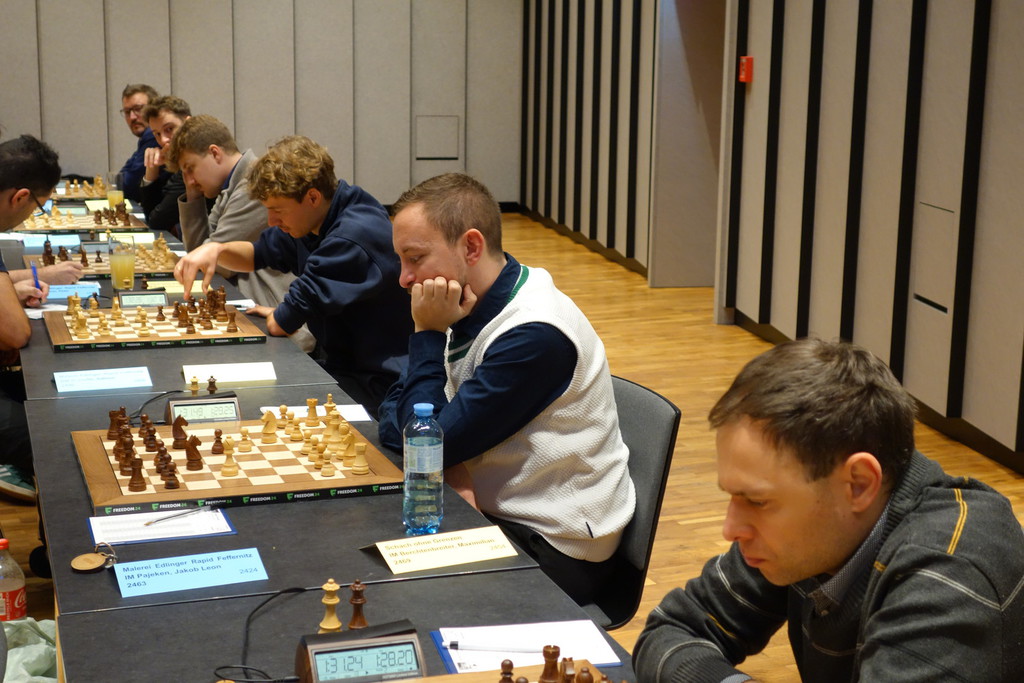 Nach einem schnellen Remis von Mäx durch Zugwiederholung dauerte es bis in die 3. Stunde, ehe die nächste Entscheidung anstand.
