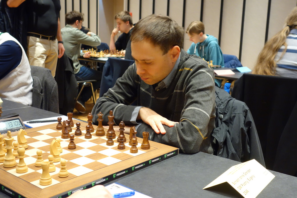 Evgeny musste schwer ,rudern’ um seinen ,Laden dicht’ zu halten. Mit großer Umsicht konnte er alles abwehren und hatte sogar noch kleine Vorteile im Endspiel. Ein starkes Kampfremis zum