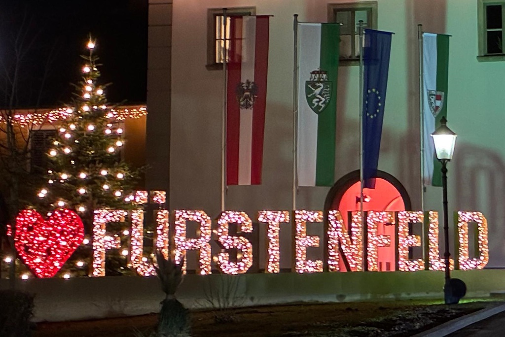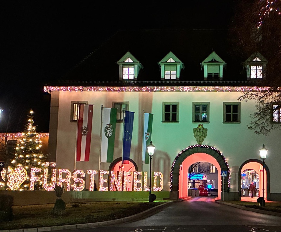 Nach zwei Tagen ,Nebelsuppe’ kam jetzt die Sonne nach Fürstenfeld und wir konnten die aufwendige Weihnachts-Deko in der Stadt bestaunen.