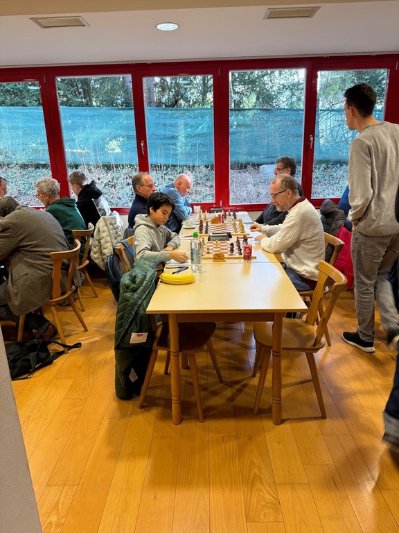 "Wir sind alle frühzeitig in Innsbruck/Rum angekommen. Die Gegner waren nicht so gut aufgestellt, wie wir es erwartet hatten, aber an Brett 1 spielte FM Florian Gatterer. Constantin kam nicht so gut aus der Eröffnung mit Schwarz. Onur hatte einen Franzosen, Tarrasch Variante mit Sf6 und eine gute Stellung. Thomas hatte wenig aus der Eröffnung und tauschte viele Figuren. Ethan und Angelina hatten viel versprechende Stellungen. Ich kam gut aus der Eröffnung und hatte eine ausgeglichene Stellung. Dann wurden die letzten drei Bretter schnell Remis, schade. Constantin brach dann am Königsflügel ein und mußte aufgeben. Onur hatte auf einmal Probleme und keine Zeit mehr. Aber die Partie war dann doch remis. Mein Gegner hatte einen Bauern eingestellt, aber verteidigte zäh. Eigentlich hätte ich das gewinnen müssen, aber ich hab's einfach nicht gesehen. Nach 4,5 Stunden habe ich dann Remis angeboten. Da war es auch eine totremisliche Stellung mit drei gegen zwei Bauern im Turmendspiel.