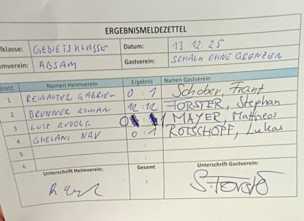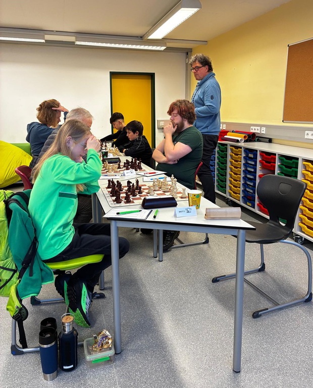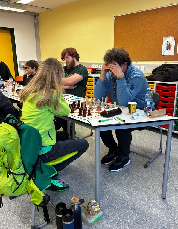 Matheos kam mit Bauerngewinn aus der Eröffnung, musste dafür aber einige gegnerische Drohungen beachten. Stephan und Lukas hatten mit ihren Schwarzpartien schwer zu kämpfen, um Ausgleich zu bekommen.
